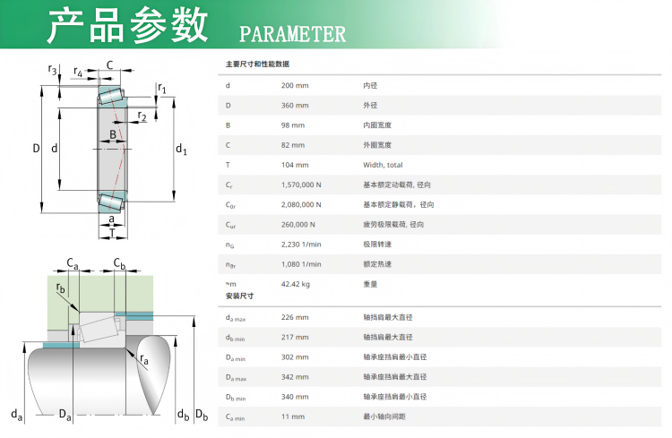 安徽捷越倉庫發(fā)貨實拍 32240-XL軸承數(shù)據(jù) d內(nèi)徑(mm): 200 D外徑(mm): 360 B寬度(mm): 104