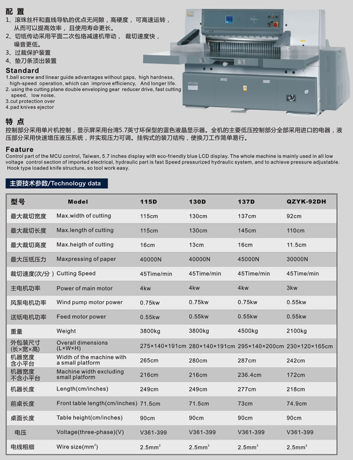QZ-115D/130D/137D/92DH液晶數顯切紙機