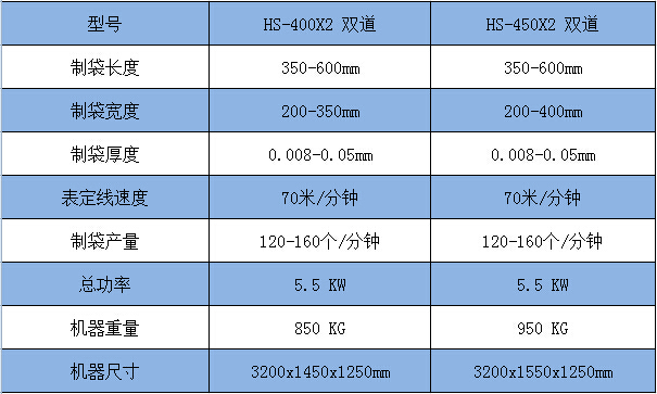 HS-450X2/400X2 制袋單機僅熱封熱切部分,不帶背心沖壓成型部分!