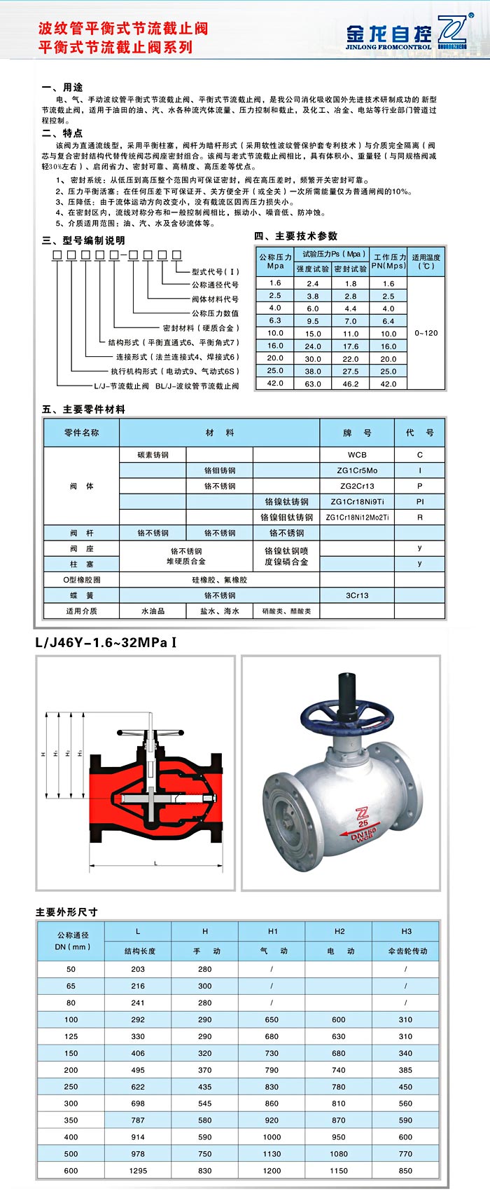 波紋管平衡式節流截止閥、平衡式節流截止閥