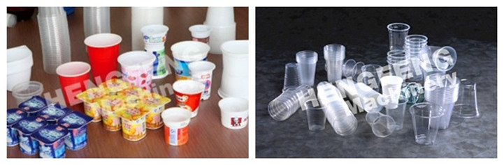 用途: 適用于PP,PS,HIPS,PVC,PET等塑料片材成型,生產各種杯,碗,碟,蓋,盒等制品如:牛奶杯,果凍杯,一次性飲料杯,方便面碗.