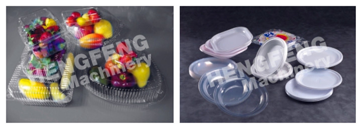 用途; 主要用于BOPS、HIPS、PVC、PET等塑料片材成型,生產各種盒、碟、托盤、碗、蓋等包裝制品。 特點: ● 連續穩定生產速度 每分鐘15-20次; ● 模具優化設計后片材利用率大于85%; ● 模具切刀連續生產500萬次以上,可重復修復;