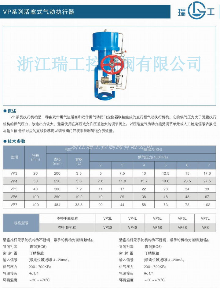 VP系列活塞式氣動執行器