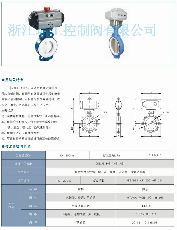 D671F4、D971F4電動襯氟蝶閥